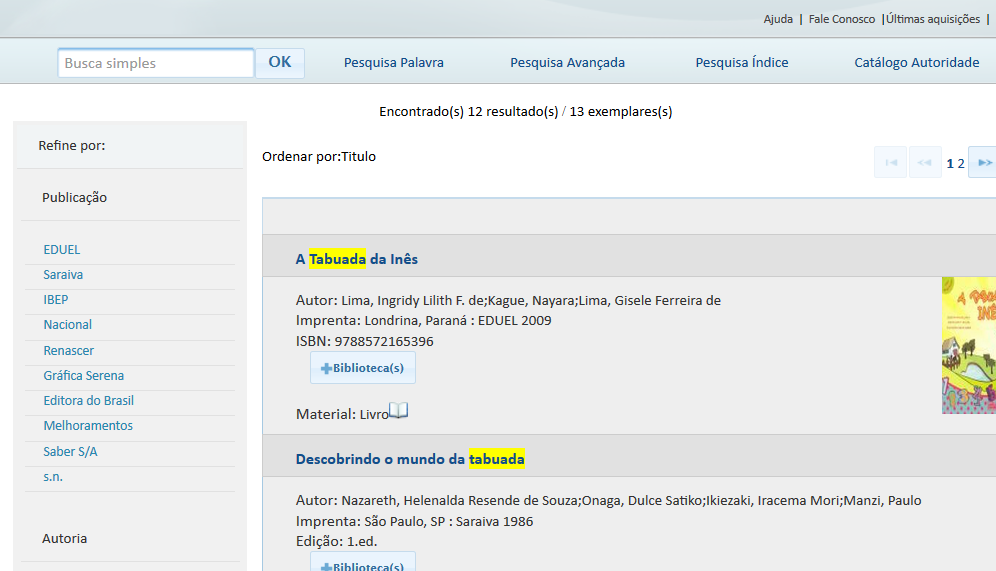 It provides access to textbooks of the various Brazilian school subjects from the 19th century to present day, considering the history and specificities of academic production. It is a reference to various bibliographical works of the country and is constantly expanded by researches of a team of experts of the area, who analyze didactic books on different aspects. LIVRES brings together sources related to didactic production such as legislation, curricular programs, catalogs of publishers and bibliography of national and international researches on the subject.